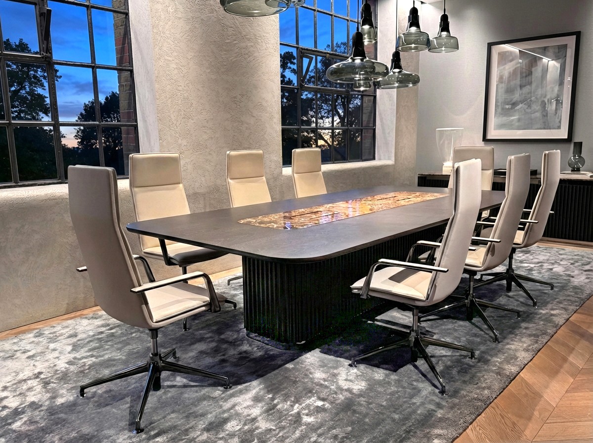 The aluminium arms are seamlessly inlaid with leather and a robust and tactile blend of materials combine in a thin-arm profile, perpetuating the supremely slim design. Optional double padding enhances comfort and gives the chair more substantial appearance.